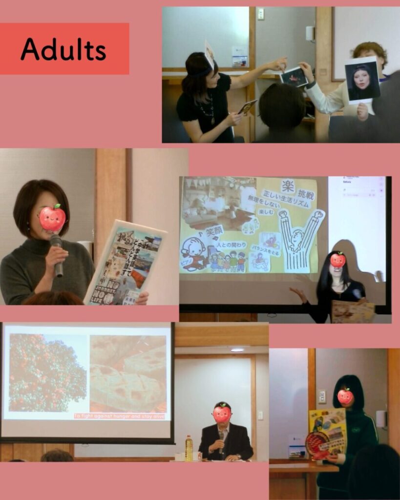 英語絵本の発表、中高生・大人によるプレゼンテーション、海外在住メンバーによるビデオ発表、台湾・韓国との国際交流プロジェクトの報告、そして後半には来場者も参加する英語体験レッスンも行われました。