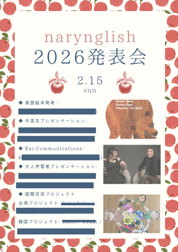 2026年2月、長崎県諫早市で narynglishの英語発表会「narynglish harvest」 を開催しました。「harvest」とは「収穫祭」。これまで積み重ねてきた学びの実を、それぞれの形で持ち寄り、分かち合うための時間です。